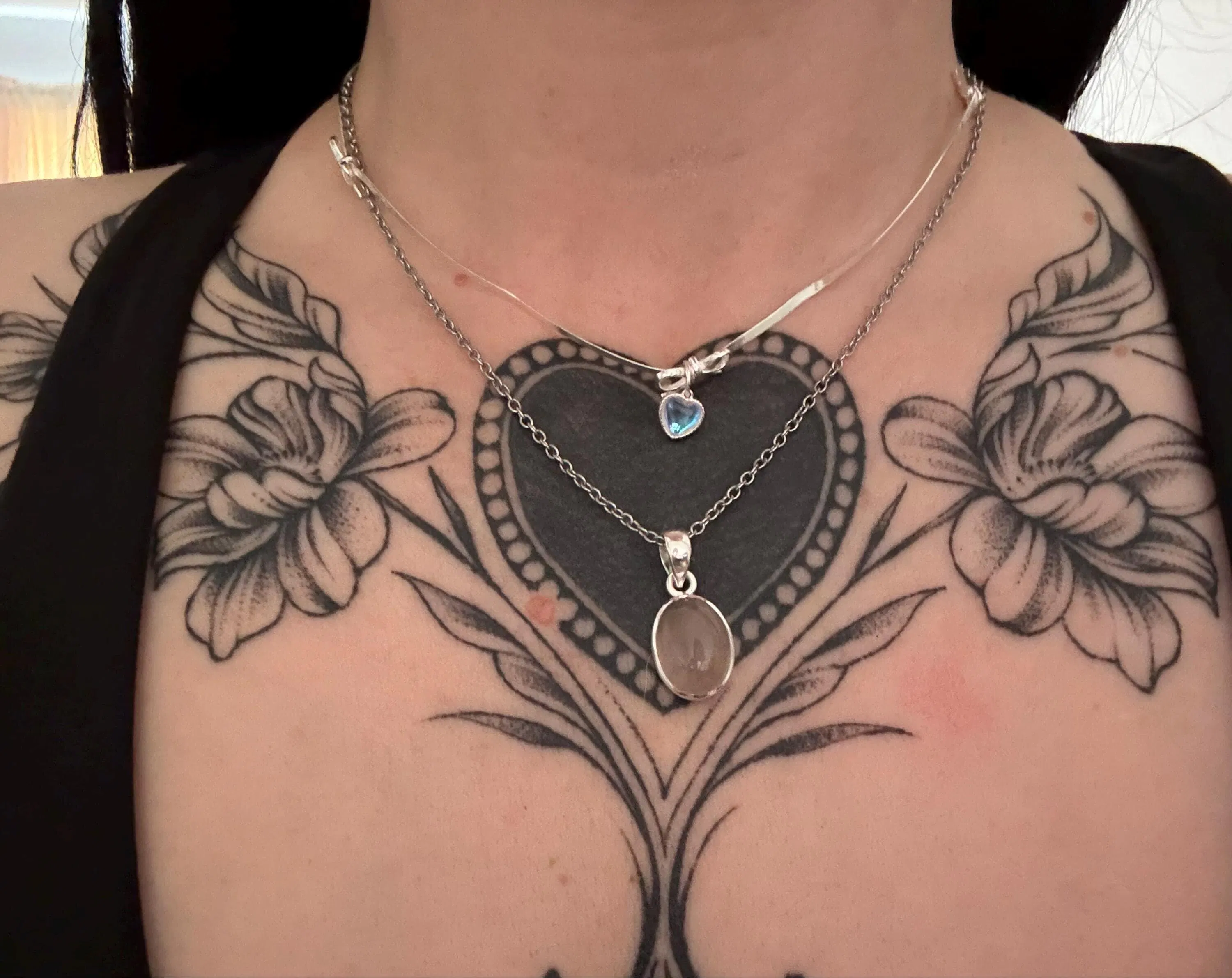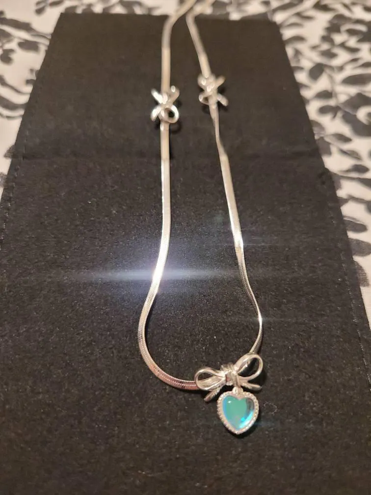 Journee features 3 bows sitting on a water-like snake chain, the center bow is holding a beautiful moonstone charm, serving the most delicate and coquette look.